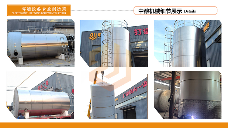 济南中酿生产的10到50吨啤酒厂清酒罐,适用于各型大型啤酒厂适用,有效容积为10到50吨,每套设备配备有若干个此类罐体,罐体可实现保温带冷却的,可以轻松实现酿制6到10种精酿啤酒的目的,本公司可以生产各型我们可以加工不同型号的啤酒厂设备啤酒发酵罐,10吨到50吨大型啤酒厂冰水罐,和各型清酒罐储酒罐等罐体,欢迎您前来咨询购买。